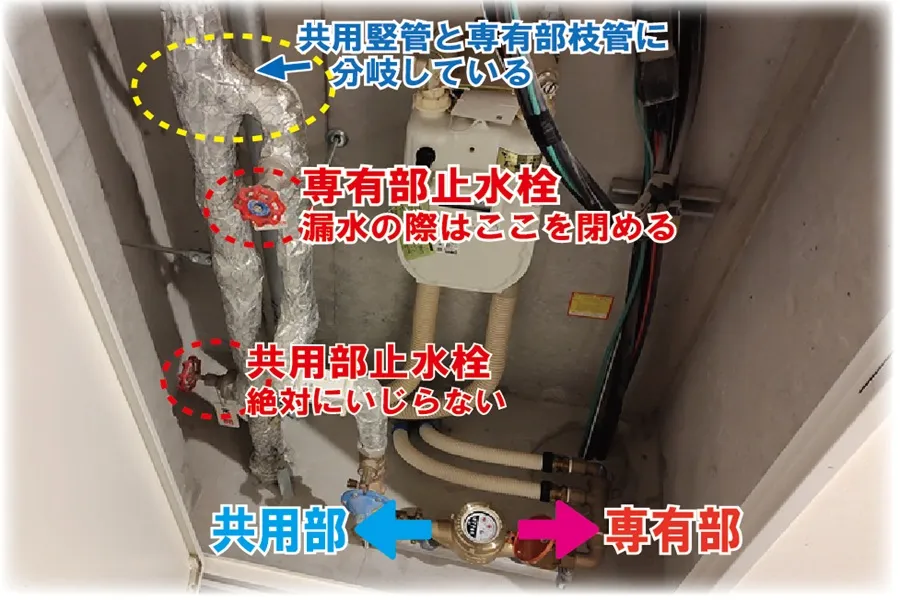 ただし、止水栓は「専有部への枝管」と「共用竪管」それぞれに付いている場合があるので要注意!